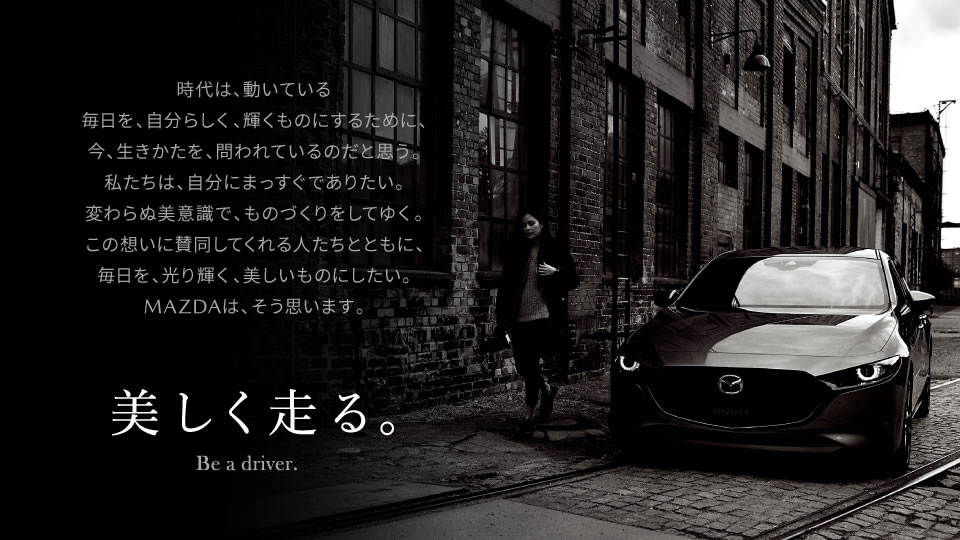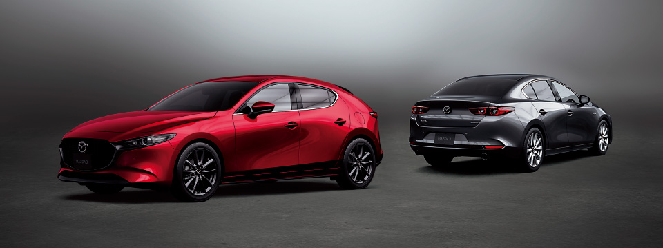 「新たなエレガンス」MAZDA3は2つのボディタイプにまったく異なる個性と世界観を表現しています。FASTBACKは魅惑的な色気を、SEDANはエレガンスと品格を突き詰め、どちらもひと目見た瞬間、理屈抜きに心が惹かれるデザインをつくり上げました。