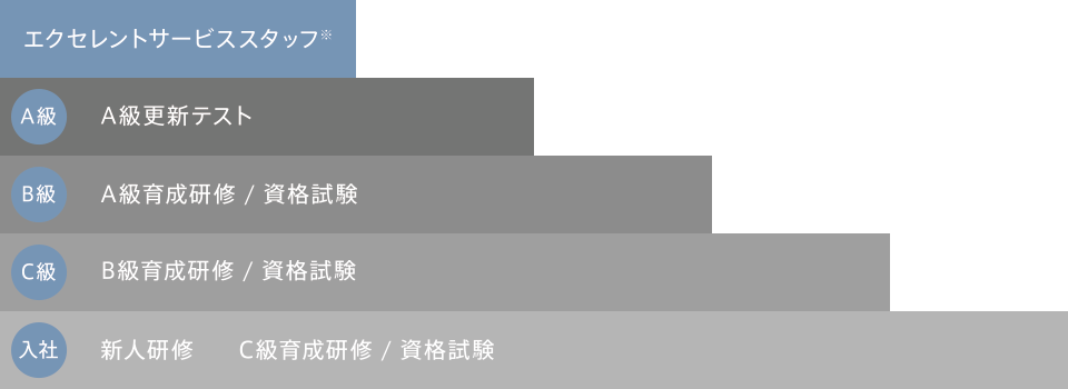 お客様の「安心・安全・快適なカーライフ」を実現させるために、マツダ独自の資格制度を設け、資格に連動した研修と資格試験を実施することによりサービススタッフの育成を進めています。