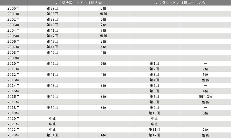東海マツダのサービス技術大会軌跡(2000年〜現在)